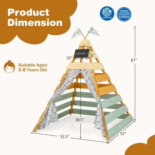 Specifications: Color Multicolor Materials Fir Wood Polyester Product Dimension 53.5″ x 53″ x 67″ Size of Chalkboard 10″ x 6″ Net Weight 32 lbs Box Qty 1(May vary by batch)