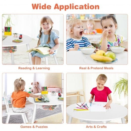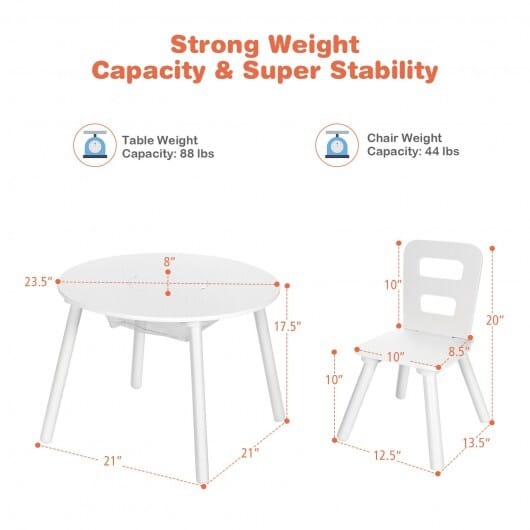 Wood Activity Kids Table and Chair Set with Center Mesh Storage-White – Color: White